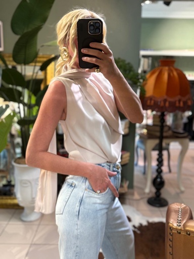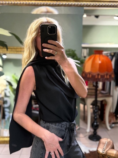 Atkı Detay Siyah Bluz