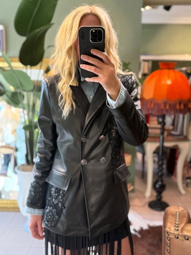 İşleme Detaylı Deri Ceket