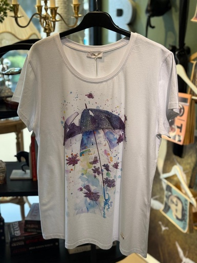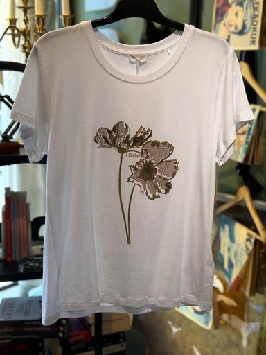 Çiçek Desen Beyaz Tişört