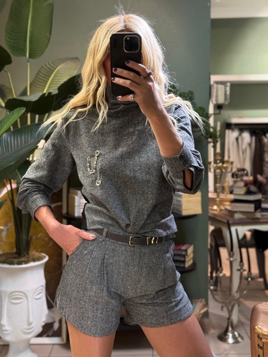 Gri Renk Omuz Taş Detaylı Takım